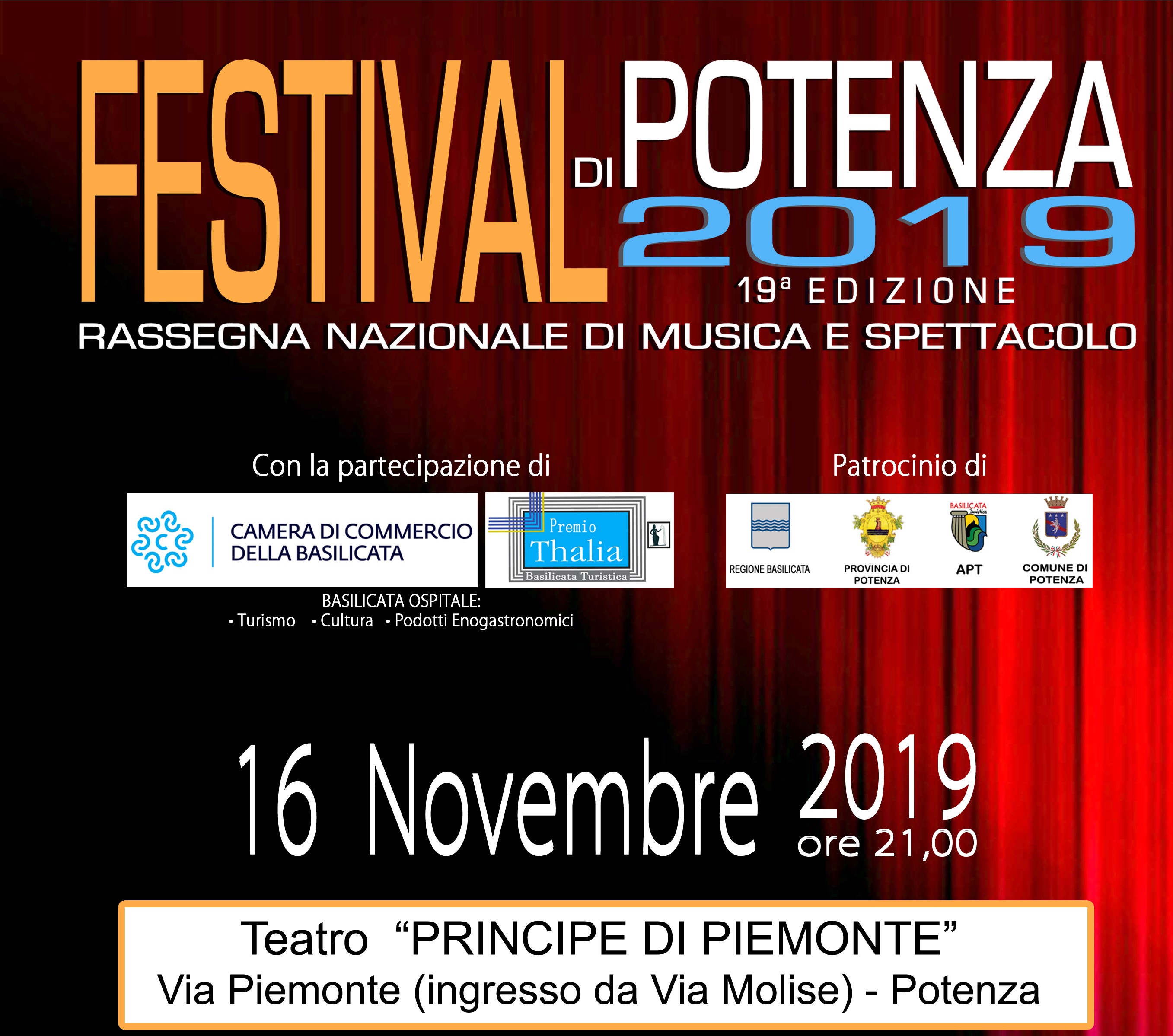 Serata di gala sabato 16 novembre (ore 21) – trasferita dal Conservatorio di Musica al teatro Principe di PiemonteInformazioni: www.festivaldipotenza.com