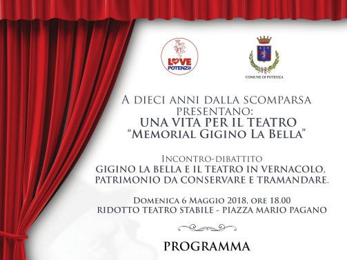 Incontro-dibattito Gigino La Bella e il teatro in vernacolo, patrimonio da conservare e tramandare. Domenica 6 Maggio 2018, ore 18.00 Ridotto Teatro Stabile – Piazza Mario …