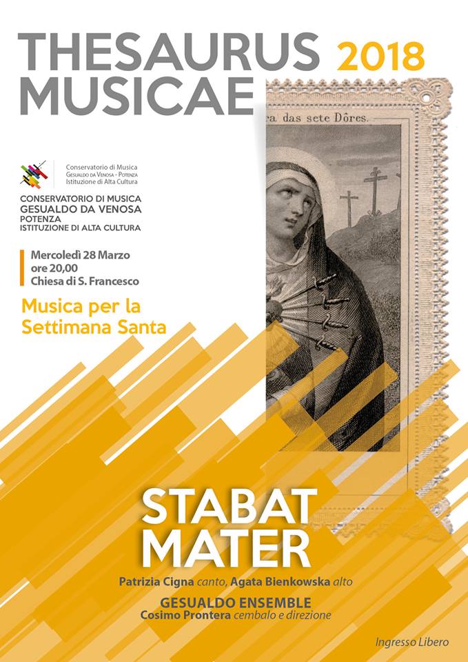 Musica per la settimana santa Mercoledì 28 marzo 2018, ore 20.00 Chiesa di San Francesco, Piazza M.Pagano – Potenza Patrizia Cigna, soprano; Agata Bienkowka, mezzosoprano …
