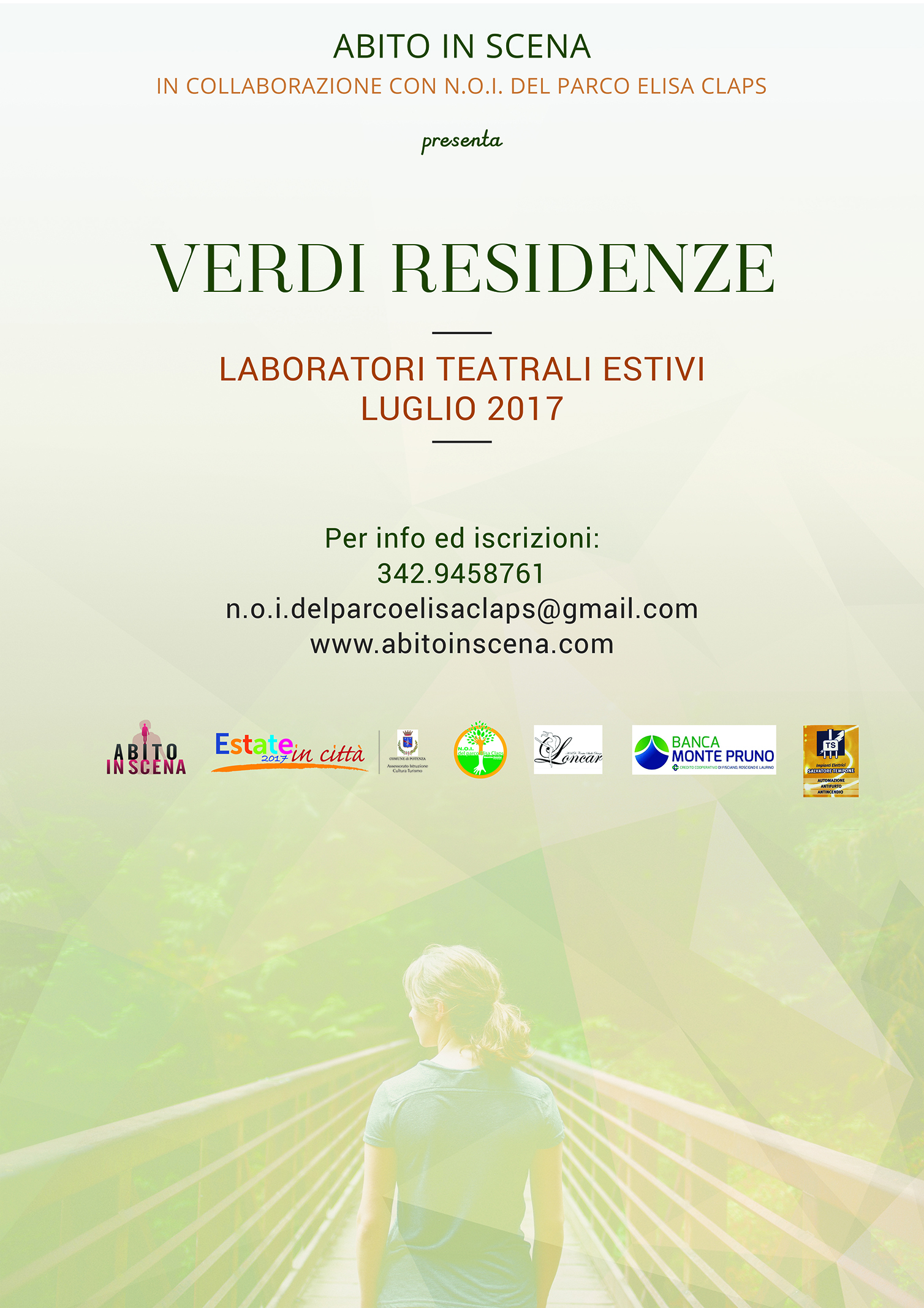 Verdi Residenze – Seconda edizione 18,19,20 e 27,28,29 luglio 2017 Parco Elisa Claps Info e iscrizioni: 342.9458761 – n.o.i.delparcoelisaclaps@gmail.com – info@abitoinscena.com Locandina Comunicato Stampa