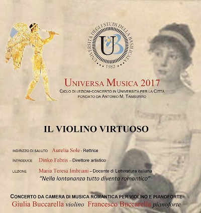 Concerto “Il violino virtuoso” Concerto da Camera di Musica Romantica per violino e pianoforte Giulia Buccarella, violino – Francesco Buccarella, pianoforte Martedì 4 aprile 2017, …