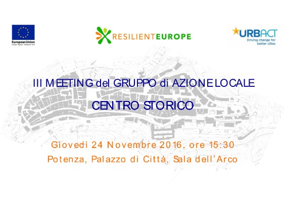 Terzo meeting del Gruppo locale del Centro storico Giovedì 24 novembre 2016, ore 15,30 / 19.00 Sala dell’Arco, Palazzo di Città, piazza Matteotti – Potenza invito Comunicato stampa …