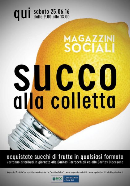 L’Associazione Io Potentino onlus per il progetto “Magazzini sociali – Potenza contro la povertà”, organizza una colletta alimentare tematica relativa ai succhi di frutta, sabato …