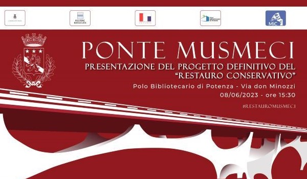 Presentazione progetto definitivo del ‘Restauro conservativo del Ponte Musmeci’Giovedì 8 giugno 2023, ore 15,30 /18,30Sala Conferenze, Polo Bibliotecario, via don Minozzi – Potenza