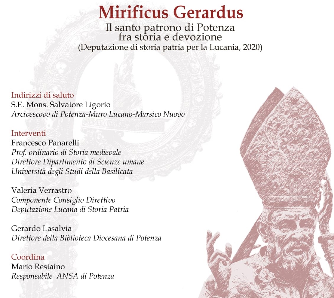 Presentazione volume Mirificus Gerardus. Il santo patrono di Potenza tra storia e devozione31 maggio 2021, ore 19.00Cattedrale di San Gerardo – Potenza