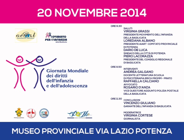 17 Novembre 2014 Giornata mondiale Diritti dell’Infanzia e dell’adolescenza 20 novembre 2014, ore 9.30 Museo Provinciale, via Lazio – Potenza infanzia.JPG