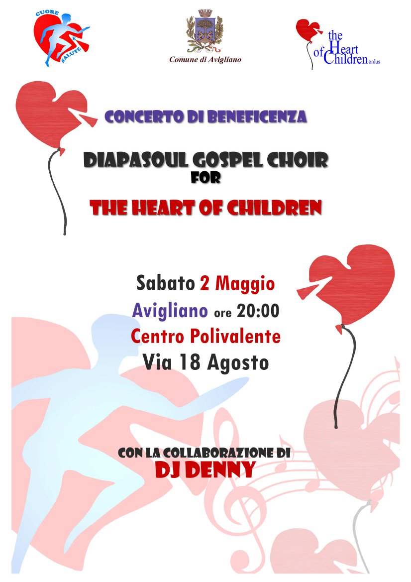 29 Aprile 2015 Concerto di beneficenza The heart of children 2 maggio 2015, ore 20.00 Centro polivalente, via 18 agosto – Avigliano (PZ) locandina Concerto Gospel.pdf