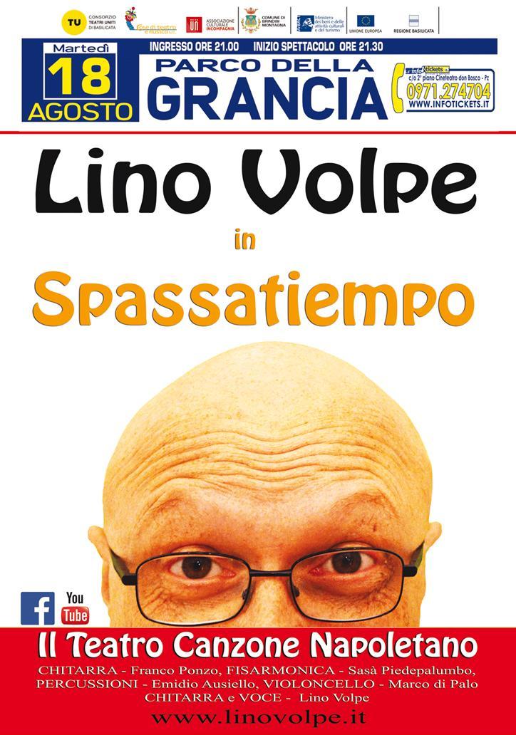 14 Agosto 2015 Teatro canzone napoletana Lino Volpe in Spassatiempo 18 agosto 2015, ore 21.00 Parco della Grancia, Brindisi di Montagna – Potenza 18agosto.jpg