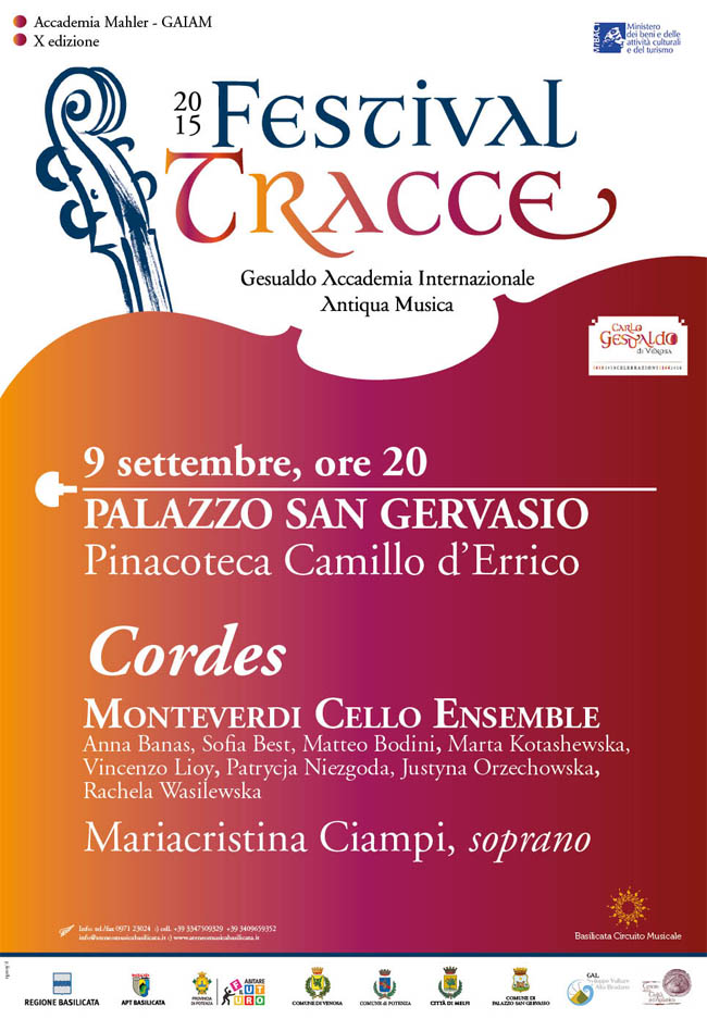 8 Settembre 2015 Festival Tracce 2015 Cordes concerto di Monteverdi Cello Ensemble 9 settembre, ore 20.00 Palazzo d’Errico Palazzo San Gervasio cordes.jpg