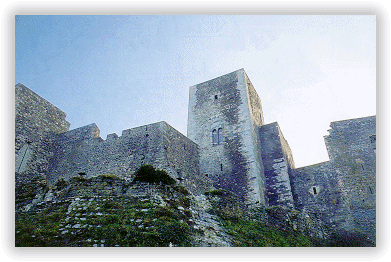 Sul colle dominante la cittadina si erge il castello normanno, successivamente ampliato durante il periodo svevo (con la torre detta di Marcangione e la cisterna nel cortile posteriore) e angioino (vani circostanti la sala del trono). Il complesso è costituito da un corpo centrale circondato da una cinta muraria, con tre torri poligonali e cinque rettangolari. In esso si tennero due concili convocati, rispettivamente, nel 1059 da Nicolò II e nel 1130 dall’antipapa Anacleto; divenuto sede degli Svevi, Federico Barbarossa vi promulgò nel 1231 le Constitutiones Augustales del Regno di Sicilia. Nel XVI secolo il castello divenne residenza della famiglia Doria fino al momento della riforma agraria.