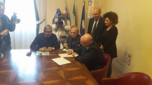 : Sono state firmate nella Sala dell’Arco del Palazzo di Città, in piazza Matteotti a Potenza le Convenzioni per l’avvio del Programma Reddito Minimo d’Inserimento, tra il Comune, l’Agenzia LAB (Lavoro e Apprendimento in Basilicata) e l’Acquedotto Lucano. Presenti il Sindaco Dario De Luca, il direttore generale dell’Agenzia LAB Antonio Fiore, l’amministratore unico di Acqu