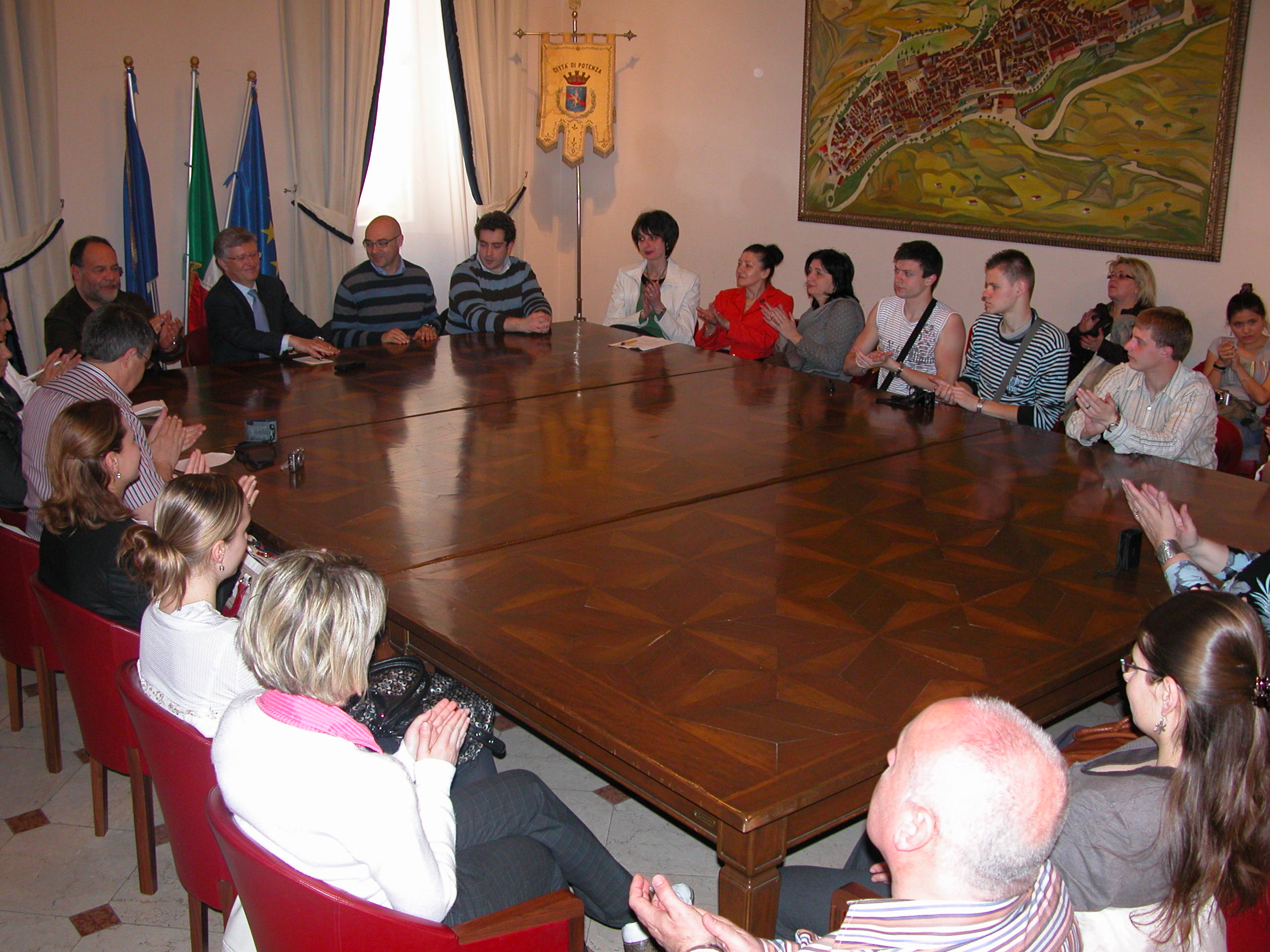 E’ stato il Sindaco di Potenza Vito Santarsiero ad accogliere nella sala dell’Arco del Palazzo di Città una delegazione di giovani provenienti da diversi Paesi europei, nell’ambito di un progetto “From School to Professional and Social Life in an Open European Space”. Agli ospiti provenienti da Lituania, Estonia, Romania, Repubblica Ceca, Turchia e Italia, accompagnati dal presidente del Gruppo Editoriale Lucano Gianluigi Petruccio e dal responsabile del centro Euronet, Antonino Imbesi, il Sindaco ha evidenziato come “quella odierna rappresenti un’occasione di crescita per voi, ma soprattutto per la nostra comunità, così come lo sono tutti gli scambi culturali internazionali. E’ importante che Radio Tour diffonda la vostra iniziativa su tutto il territorio locale, così come a livello europeo, essendo presente capillarmente sia dentro sia fuori i confini regionali. La nostra è una città antica – prosegue Santarsiero – le cui origini risalgono all’epoca preromana, che seppe essere protagonista ancora molti secoli più tardi, allorquando dai moti che in essa videro la genesi si avviò quel processo che condusse all’Unità d’Italia. Da allora in poi la città si è sviluppata fino a divenire centro di riferimento sia dal punto di vista del trasporto pubblico meccanizzato, con la realizzazione di un sistema di scale mobili che è il più lungo del Vecchio Continente, sia per quel che riguarda la cultura, con una serie di mostre, ultima delle quali, quella sul realismo ungherese, attualmente ospitata nella galleria civica cittadina”. Petruccio ha spiegato che “attraverso contatti e analisi basate sulla somministrazione di questionari in diversi paesi europei sia risultato un diverso approccio del mondo della scuola professionale nei confronti di quello del lavoro. In alcune realtà si opera in stretta sinergia e parte dei processi produttivi coinvolgono direttamente gli studenti, in altre la distanza è ancora troppo marcata”.
