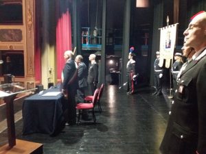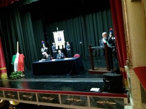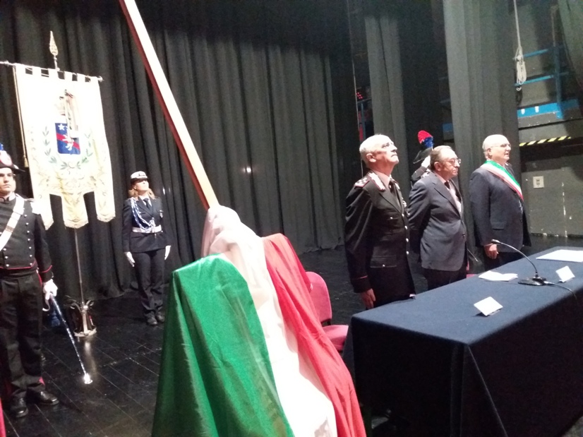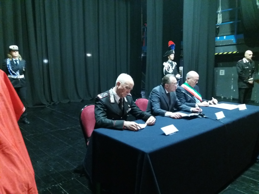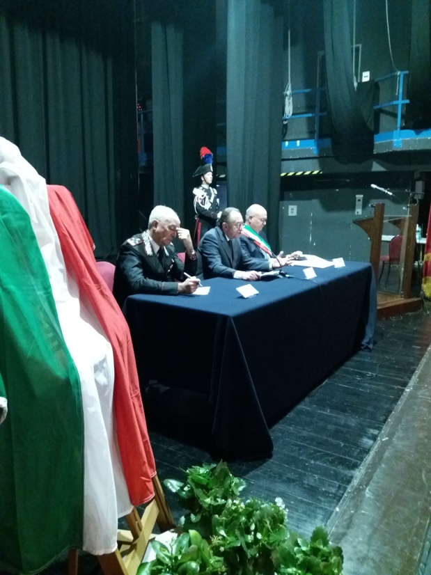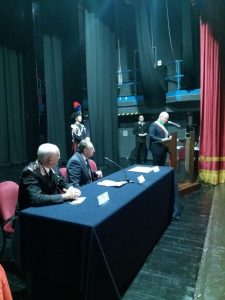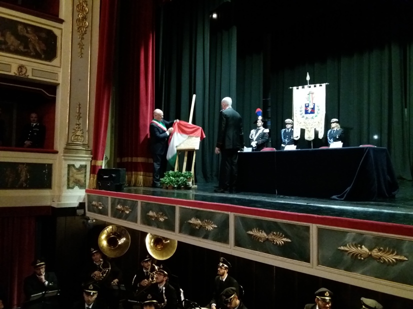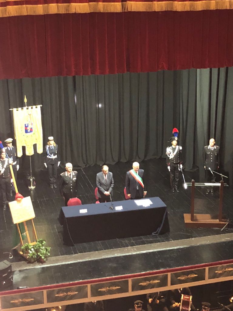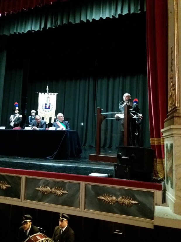 Alcuni momenti della cerimonia tenutasi all’interno del teatro Stabile, in piazza Mario Pagano, e dell’incontro svoltosi all’interno della Caserma Lucania, in piazza Aldo Moro (rione Santa Maria):