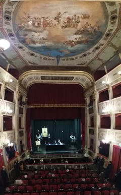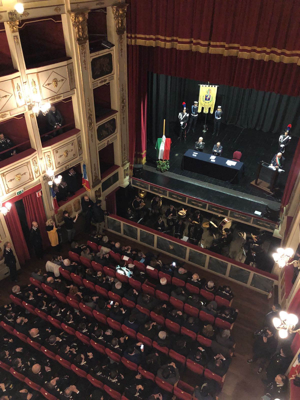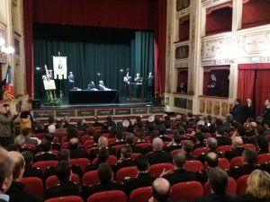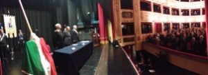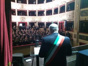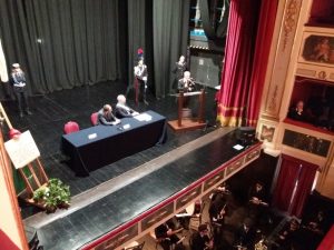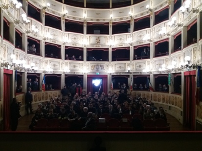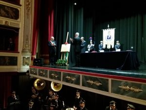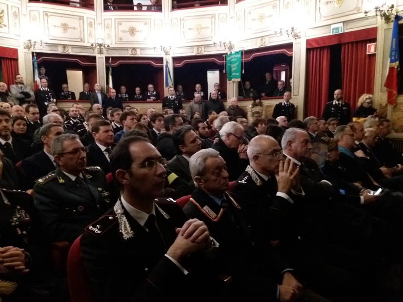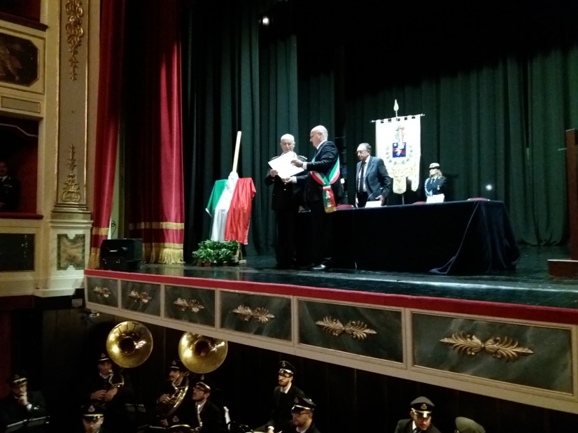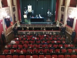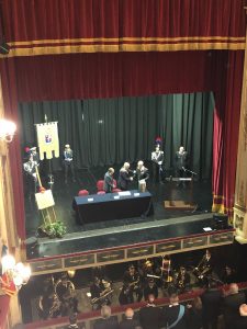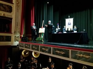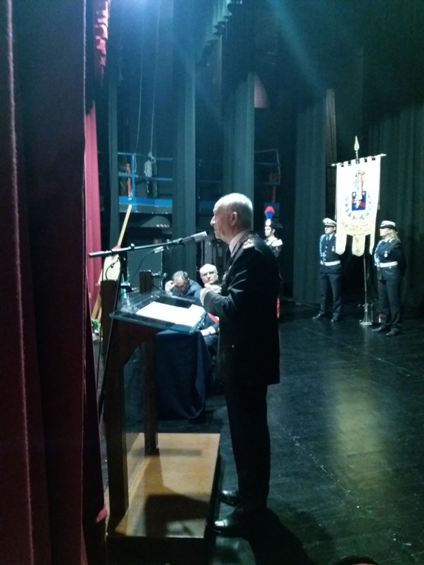 Alcuni momenti della cerimonia tenutasi all’interno del teatro Stabile, in piazza Mario Pagano, e dell’incontro svoltosi all’interno della Caserma Lucania, in piazza Aldo Moro (rione Santa Maria):