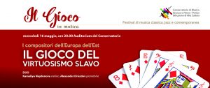 14.5.18-ore 10,50: Nota del Conservatorio di musica ‘Gesualdo da Venosa’: mercoledì 16 maggio alle ore 20 nell’Auditorium del Conservatorio di Musica “Gesualdo da Venosa” di Potenza è in programma, con ingresso libero, il concerto “Il gioco del virtuosismo slavo”. Terzo appuntamento del Festival di musica classica, jazz e contemporanea del Conservatorio, inserito nell’ambito del cartellone del Maggio Potentino organizzato dal Comune di Potenza in collaborazione con la Bcc Basilicata.