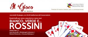 15.06.18-ore 12: Nota diffusa dal Consevatorio ‘G. da Venosa’ di Potenza: Mercoledì 20 giugno alle ore 20 presso nell’Auditorium del Conservatorio di Musica Gesualdo da Venosa di Potenza, in programma il concerto “Rossini. Bianco, verde e …”. Settimo appuntamento del Festival di musica classica, jazz e contemporanea del Conservatorio, inserito nell’ambito del cartellone del Maggio Potentino organizzato dal Comune di Potenza in collaborazione con la Bcc Basilicata.