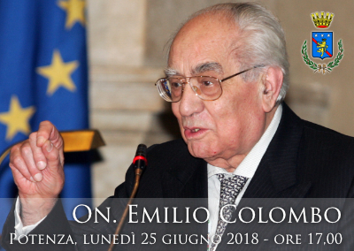 22.06.18-ore 10,15: Lunedì 25 giugno, alle ore 17,00, nel giorno del quinto anniversario dalla scomparsa del Presidente Emilio Colombo, sara’ celebrata in suo suffragio una S. Messa presso la chiesa di Santa Maria del Sepolcro in piazza Aldo Moro a Potenza. Seguira’ la cerimonia di inaugurazione della strada cittadina intitolata al compianto Presidente.