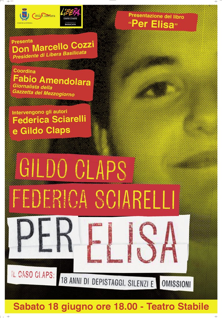 Presentazione in anteprima nazionale del libro “Per Elisa – Il caso Claps: 18 anni di depistaggi, silenzi e omissioni”, scritto da Gildo Claps e Federica Sciarelli, giornalista e conduttrice del programma di Raitre “Chi l’ha visto?”.