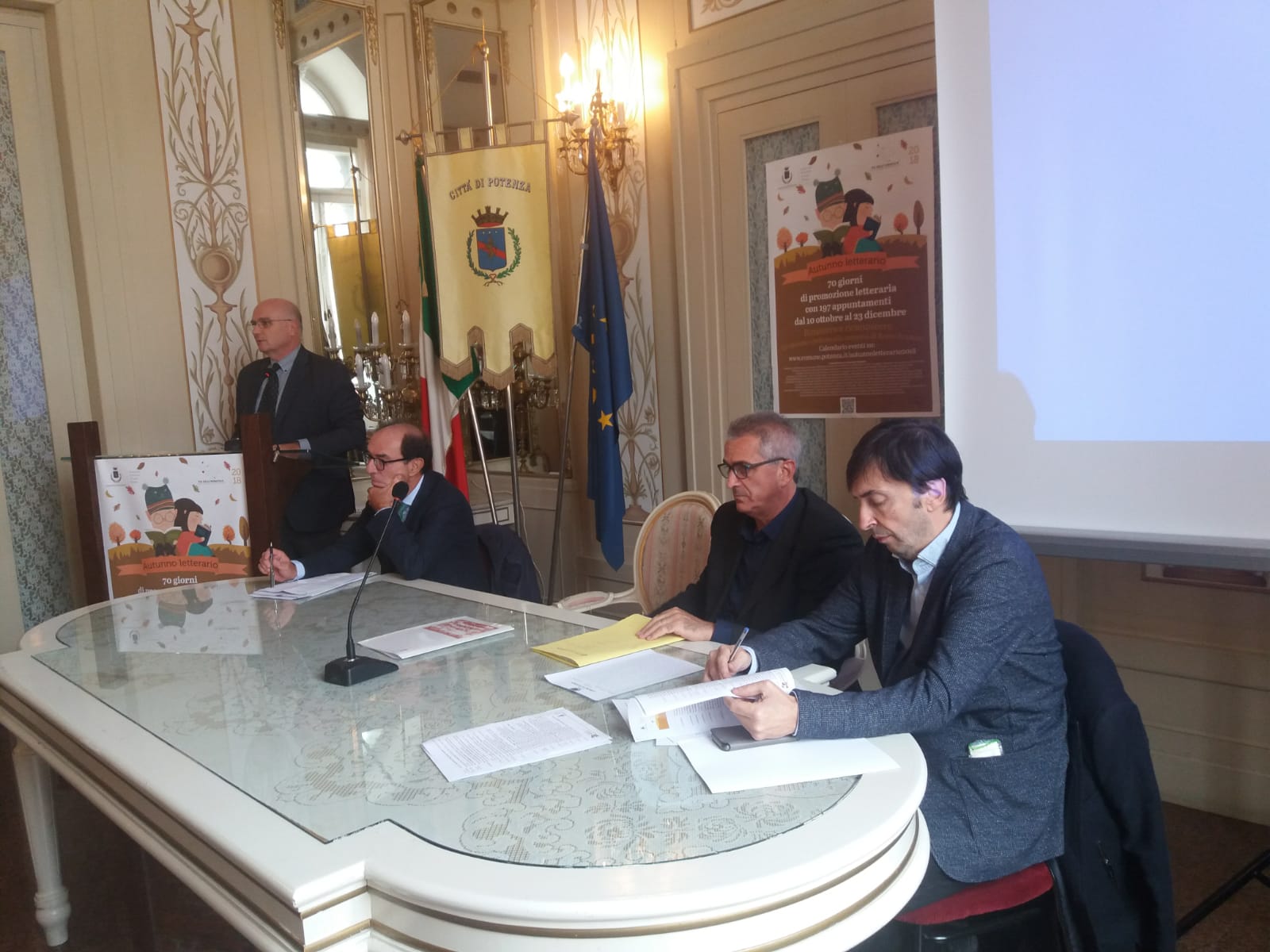 4.10.18 – ore 16,30: “Rinascere e riconoscere, questi i due pilastri sui quali abbiamo costruito la proposta culturale dell’edizione 2018 dell’autunno letterario”, così ha esordito l’assessore alla Cultura Roberto Falotico, nel corso della presentazione del programma di manifestazioni che si svolgeranno dal 10 ottobre al 23 dicembre, nell’ambito del cartellone dell’Autunno letterario, in totale 197 appuntamenti in 70 giorni. “La rinascita di una città, di un popolo, di ciascuno, una rinascita che proprio a cominciare dalla cultura, dall’arte intesa nelle sue molteplici sfaccettature, dalla capacità di proporre forme espressive che facciano vibrare le corde dell’anima, vuole giungere al cuore della nostra comunità per immaginare oggi e realizzare domani un futuro diverso, fecondo, migliore per tutti e soprattutto per i nostri giovani. Ma questo cartellone è anche e soprattutto un riconoscere i talenti che la nostra terra genera, le capacità che la Basilicata è in grado di esprimere, i grandi tesori che tanti nostri concittadini rappresentano per noi e per l’Italia tutta. Quest’anno infatti, con un’apposita delibera abbiamo inteso dedicare i due mesi di eventi a Rocco Brancati, uomo di grande levatura, che ci ha fatto vivere con i suoi racconti la cultura lucana e meridionale degli ultimi decenni, Lucania e Sud che tanto amava, amore che traspariva da un lavoro capace di andare a indagare anche gli spazi meno visibili, come un cronista d’altri tempi, quello che lui in realtà era. Il suo sguardo orientato verso le origini, con grande naturalezza veniva orientato verso le nuove sfide che la tecnologia gli proponeva. Rocco, e ringrazio la moglie Luciana, il fratello Massimo e i suoi amici Renato Cantore e Oreste Lopomo qui presenti, ha fatto della Cultura con la ‘C’ maiuscola la sua ragione di vita, sia durante gli anni trascorsi nella redazione regionale della Rai, sia come membro della Deputazione di Storia patria per la Lucania, sia ancora in qualità di componente della giuria di saggistica del Premio Letterario Basilicata. Cittadino onorari