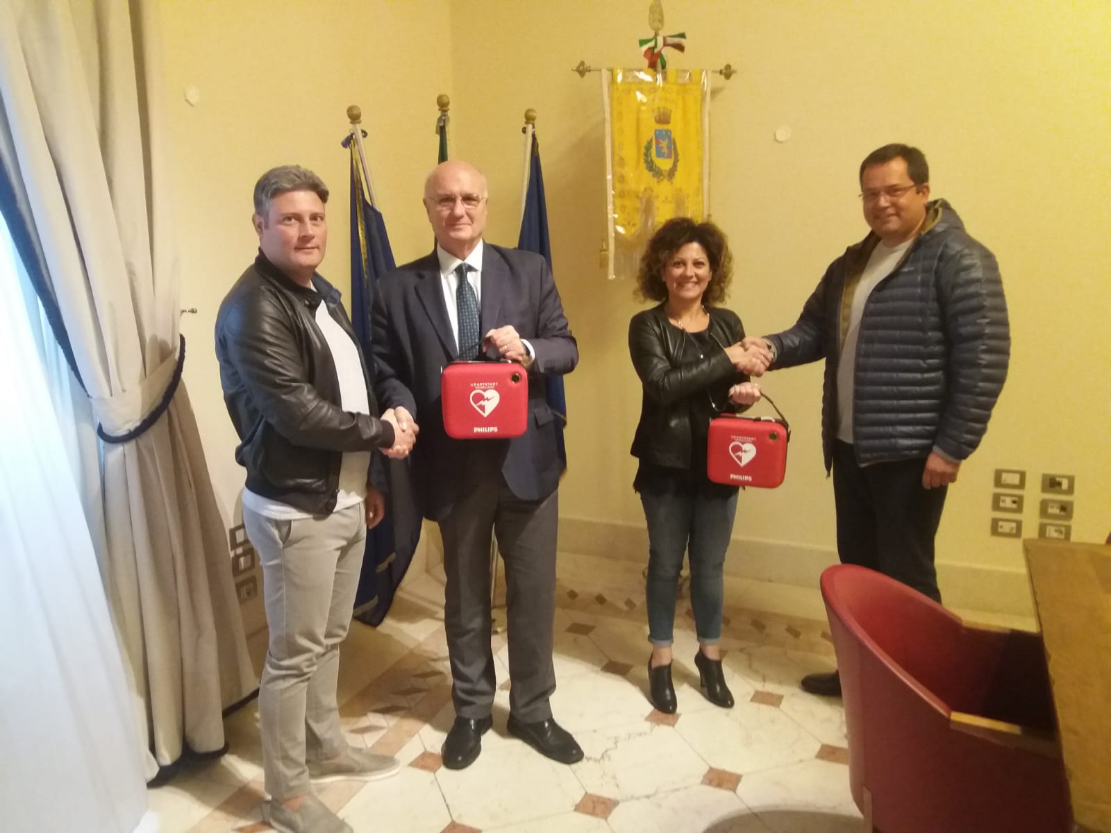 5.10.18-ore 11,40: Sono stati Vito Brancato e Domenico Tammone della Global Service a consegnare due defibrillatori al Sindaco di Potenza Dario De Luca e all’assessore allo Sport Valeria Errico. I dispositivi ‘salvavita’ saranno installati presso le palestre ‘Vito Lepore’ e ‘Luigi La Vista’. “Ringraziamo la Global Service che donando i defibrillatori ha dimostrato spiccata sensibilità, attenzione e grande generosità verso la comunità. Dotare tutti i complessi sportivi dei defibrillatori è un obiettivo importante per l’amministrazione, per le società e per gli atleti che li frequentano”, questo il commento dell’assessore Errico. Il Sindaco nel dirsi grato per il “prezioso gesto del quale beneficia la città di Potenza”, ha ribadito “l’importanza di diffondere la cultura della sicurezza, anche in ambito sportivo”, annunciando la volontà di “organizzare corsi, per formare personale pronto a intervenire in caso di necessità, non solo nell’uso dei defibrillatori, ma in grado di porre in essere tutte quelle azioni atte ad assistere le persone che necessitano di cure, nei primissimi momenti, prima dell’arrivo del soccorsi”.