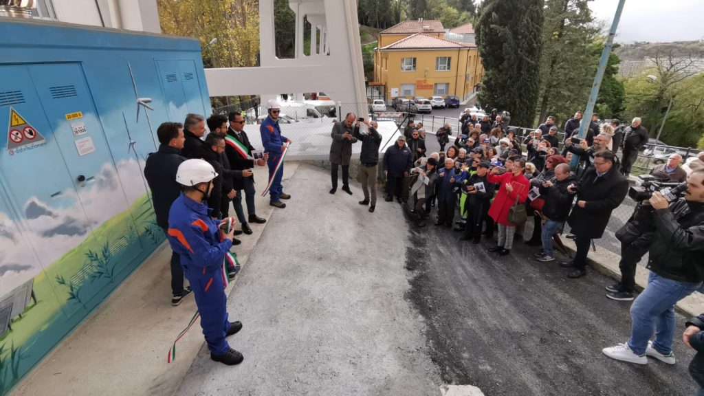 13.11.2019-ore 13,30: Immagini dell’apertura del rinnovato Ponte di Montereale e della nuova cabina E-Distribuzione posta al di sotto del Ponte.
