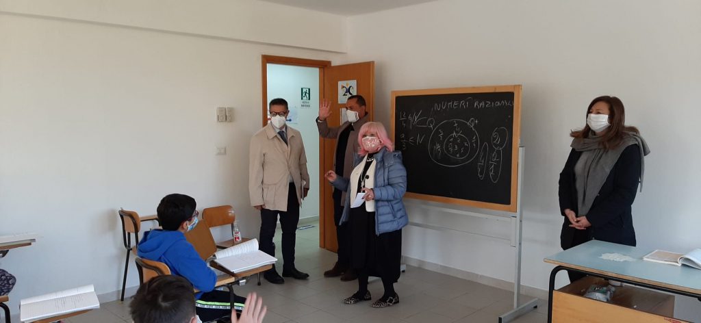 20.10.2020 – ore 12,55: Sono stati il Sindaco di Potenza Mario Guarente, il vicesindaco Antonio Vigilante e l’assessore al Patrimonio Giuseppe Giuzio a recarsi nei locali assegnati al plesso di via Bramante dell’Istituto Comprensivo ‘Don Milani’, situati al quarto piano dell’edificio che ospita il centro commerciale ‘Galassia’, in viale dell’Unicef. Si tratta di un immobile di 850 metri quadri, per un valore complessivo di un milione di euro, la cui disponibilità è stata resa nota al Comune dall’Agenzia Nazionale per l’Amministrazione e la Destinazione dei Beni Sequestrati e Confiscati alla Criminalità Organizzata, a seguito di una confisca definitiva. Durante la visita ai locali, la delegazione comunale ha avuto modo di incontrare i 120 alunni delle sei classi ospitate e il personale scolastico, docente e non docente presente nella struttura. Dopo il saluto del Sindaco, gli assessori Giuzio e Vigilante si sono fermati insieme alla dirigente scolastica Marcella Marsico in una delle classi per un breve incontro.