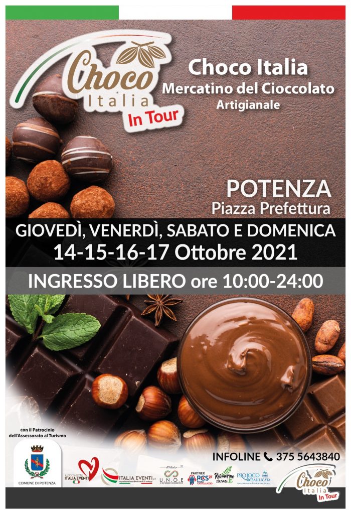 4.10.2021 – ore 9,45: Sarà presentata martedì 5 ottobre 2021, nel Palazzo della Cultura, alle ore 11, l’edizione 2021 della prima tappa dell’edizione 2021 del ‘Choco Italia in tour’, mercatino del cioccolato artigianale in programma dal 14 al 17 ottobre, dalle ore 10 alle 24 di ogni giorno dell’esposizione, in piazza Mario Pagano a Potenza. All’incontro con la stampa sarà presente l’assessore al Turismo Alessandro Galella e il presidente dell’associazione ‘Italia eventi’, Giuseppe Lupo, che ha organizzato la manifestazione.