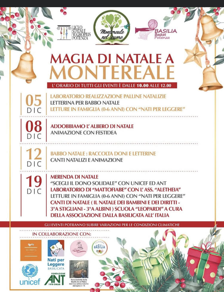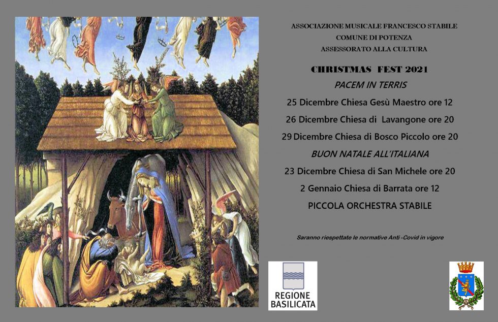 24 Dicembre 2021 La Potenza del Natale Cartellone eventi: mostre, concerti, mercatini e villaggi di Babbo Natale. Calendario degli EventiDownload