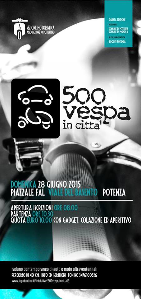 22 Giugno 2015 500 vespa in città Raduno contemporaneo di auto e moto ultravennali 28 giugno 2015, ore 8.00 Piazale FAL, viale del Basento – Potenza 11407304_1593619974260328_5256411831282588652_n.jpg