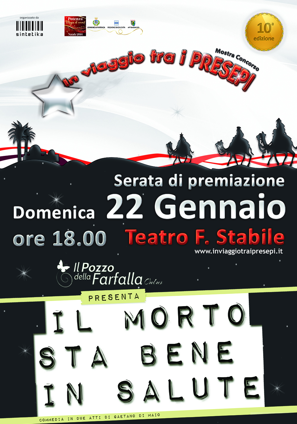 Durante la serata sarà messa in scena la commedia in 2 atti di Gaetano Di Maio “Il morto sta bene in salute” in collaborazione con Il Pozzo della Farfalla onlus per la regia di Rocco Laurita.