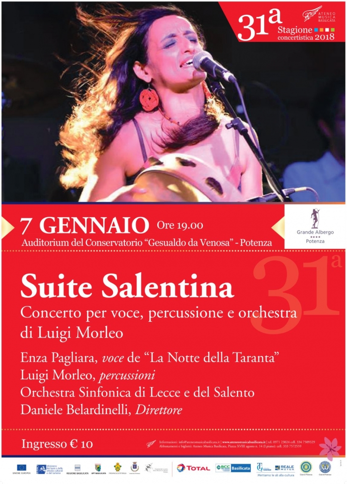 “Suite Salentina”, titolo del concerto, si ispira alla tradizione popolare della pizzica rivisitata in veste sinfonica dall’ OLES, Orchestra Sinfonica di Lecce e del Salento. Diretta dal M° Daniele Belardinelli, attuale Direttore musicale dell’ Orchestra Italiana del Cinema, l’Orchestra diffonde la cultura musicale in Italia e all’estero, attraverso la realizzazione di stagioni sinfoniche e liriche. Grandi interpreti del concerto , inoltre, saranno Enza Pagliara, voce storica della “Notte della Taranta” e il percussionista e compositore Luigi Morleo, di cui sarà eseguita la “Suite Salentina”, Concerto per Voce, Percussioni e Orchestra, ed una prima esecuzione assoluta della Suite“Taranta Future”, che include brani come “Tarantella del Gargano”, “Lu nigghje n aria va”, “ Pizzica di San Vito” e “Taranta di Lizzano”.