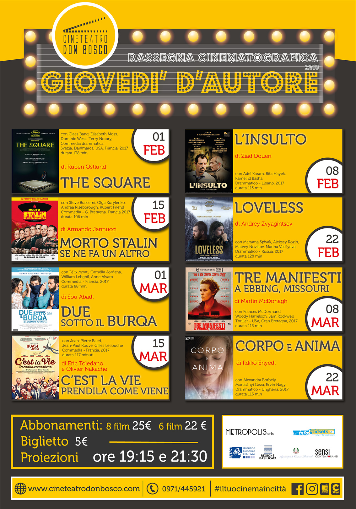 Dal 1° febbraio al 22 marzo 2018, proiezioni ore 19:15 e 21:30