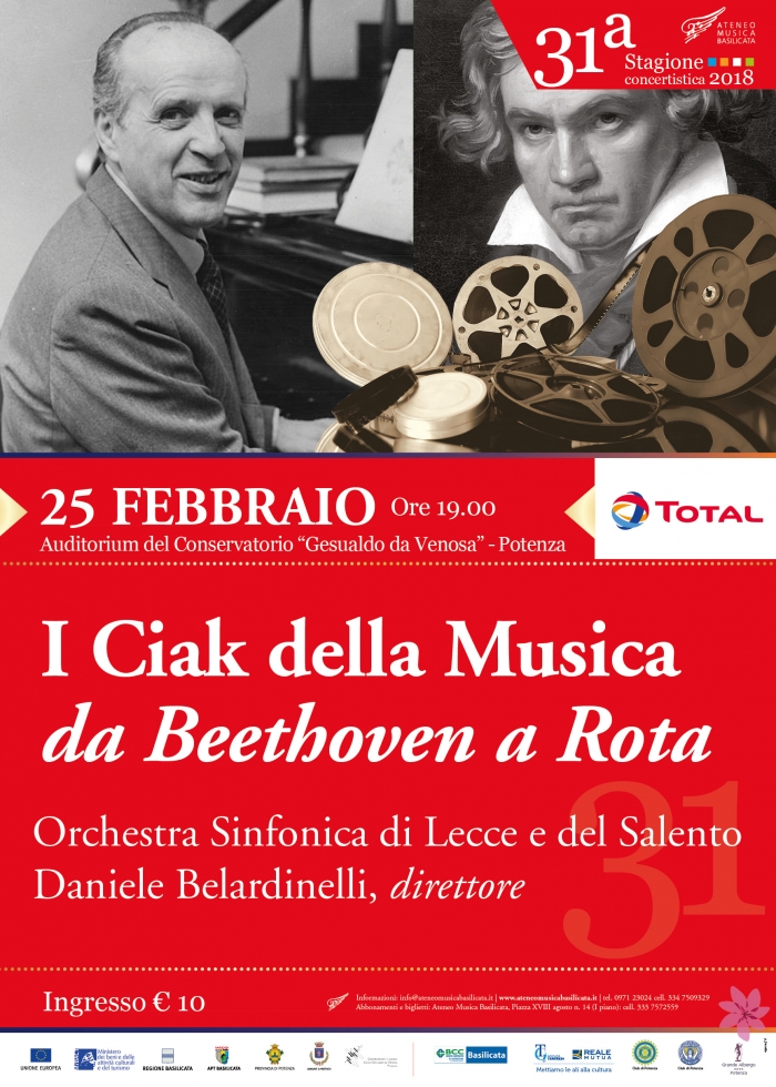 Domenica 25 febbraio alle ore 19:00 presso l’Auditorium del Conservatorio “ Gesualdo da Venosa ” di Potenza, “ I Ciak della Musica” da Beethoven a Rota, un avvincente concerto che spazia dal capolavoro della Settima Sinfonia di Beethoven, il cui secondo movimento ha accompagnato le immagini del film “Il discorso del re”, alle indimenticabili note di Nino Rota, una delle maggiori personalità del ‘900 musicale che tanta produzione ha dedicato al cinema.