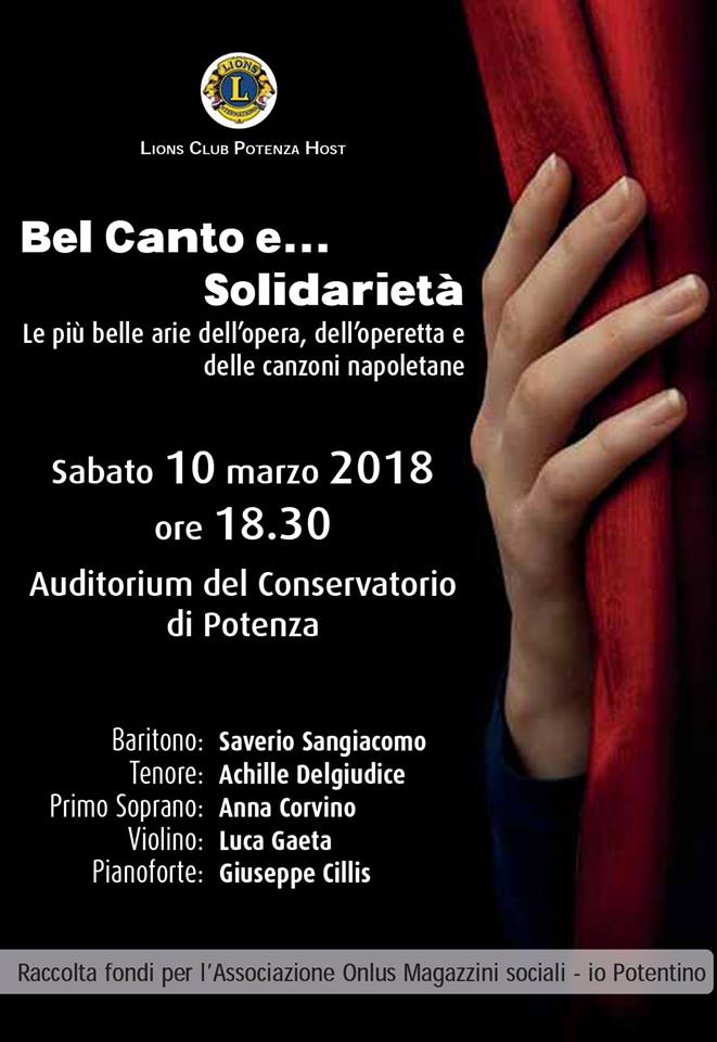 Concerto di beneficenza “Bel Canto e Solidarietà”, con le più belle arie dell’opera, dell’operetta e delle canzoni napoletane.