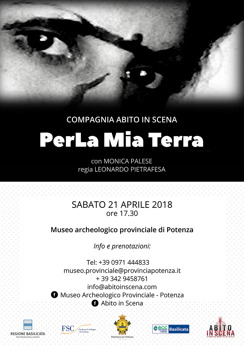 La performance PerLa Mia Terra è supportata dalla Regione Basilicata – Presidenza della Giunta (L.R. n° 37/2014) con il Patrocinio della Provincia di Potenza e il contributo della Bcc – Basilicata.