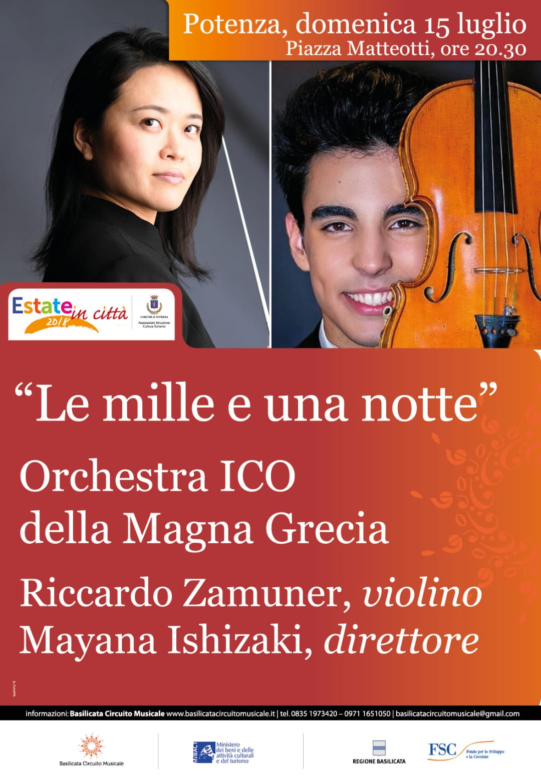 2 Luglio 2018 Concerto Le mille e una notte Orchestra ICO della Magna Grecia Domenica 15 luglio 2018, ore 20.30 Piazza Matteotti – Potenza Locandina