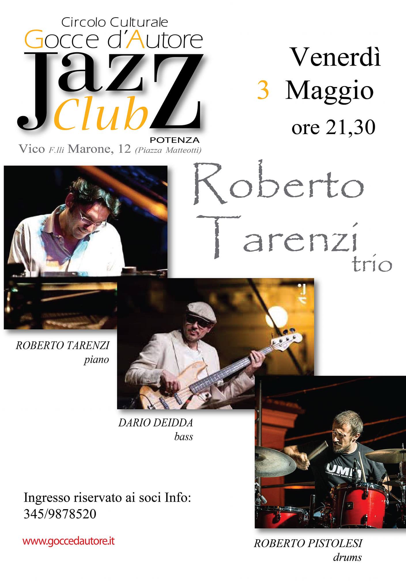 2 Maggio 2019 Gocce d’autore jazz club Roberto Tarenzi TrioVenerdì 3 maggio, ore 21.30Circolo gocce d’autore, vico Fratelli Marone, 12 – Potenza Locandina Scarica