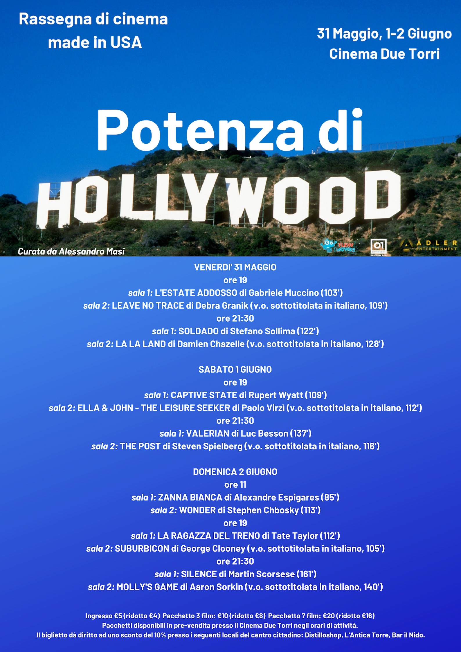 Potenza di Hollywood, la rassegna di cinema made in Usa organizzata da FlexyMovies in collaborazione con 01Distribution e Adler Entertainment, in programma da venerdì 31 maggio a domenica 2 giugno a Potenza presso il cinema Due Torri.