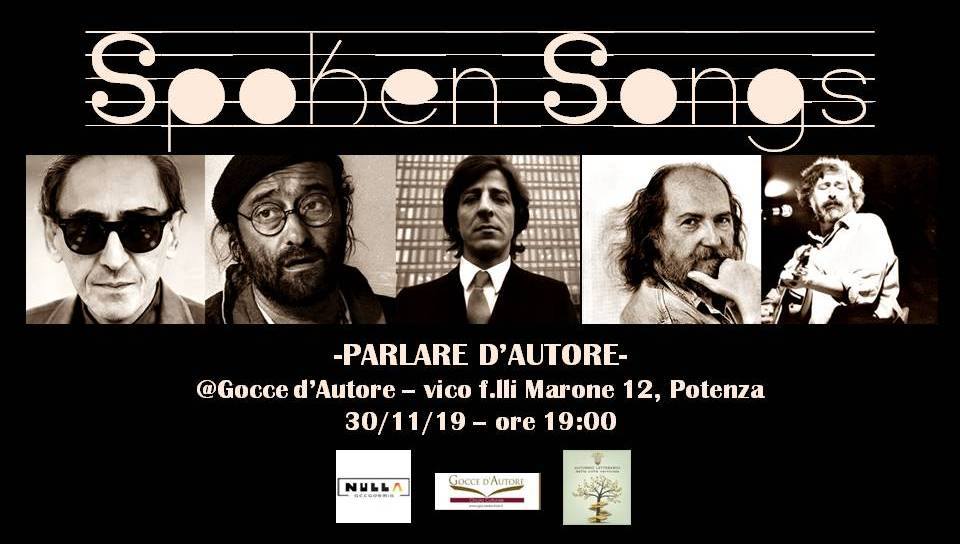 29 Novembre 2019 Nulla Accademia “Spoken Songs – parlare d’autore” Sabato 30 novembre, ore 21.00Gocce d’Autore, vico Fratelli Marone, 12 – Potenza LocandinaDownload Comunicato stampaDownload