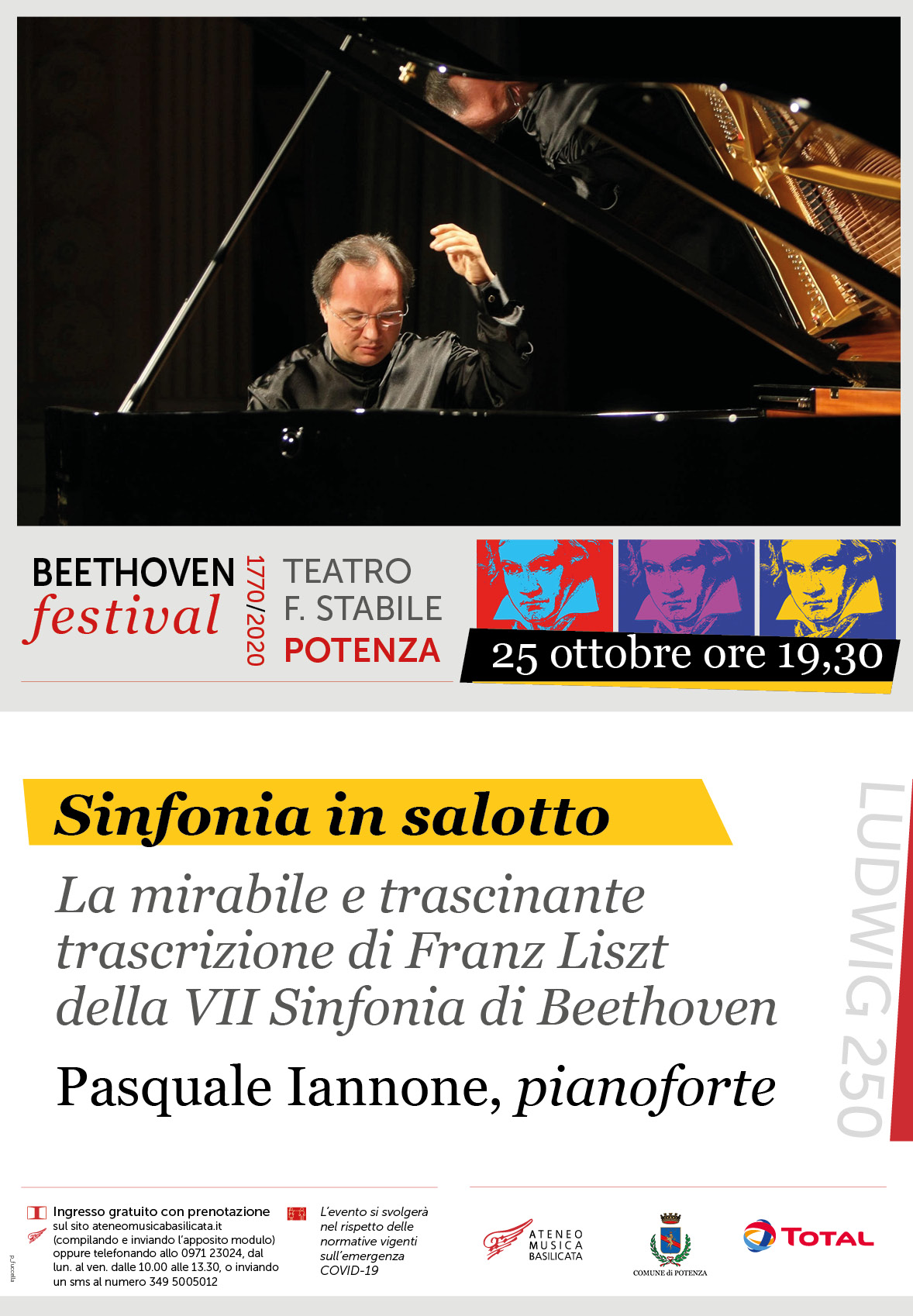 Concerto “Sinfonia in salotto” del M° Pasquale Iannone, che darà il via alle celebrazioni del 250° anniversario dalla nascita del grande compositore Ludwig van Beethoven con un programma per pianoforte solo.