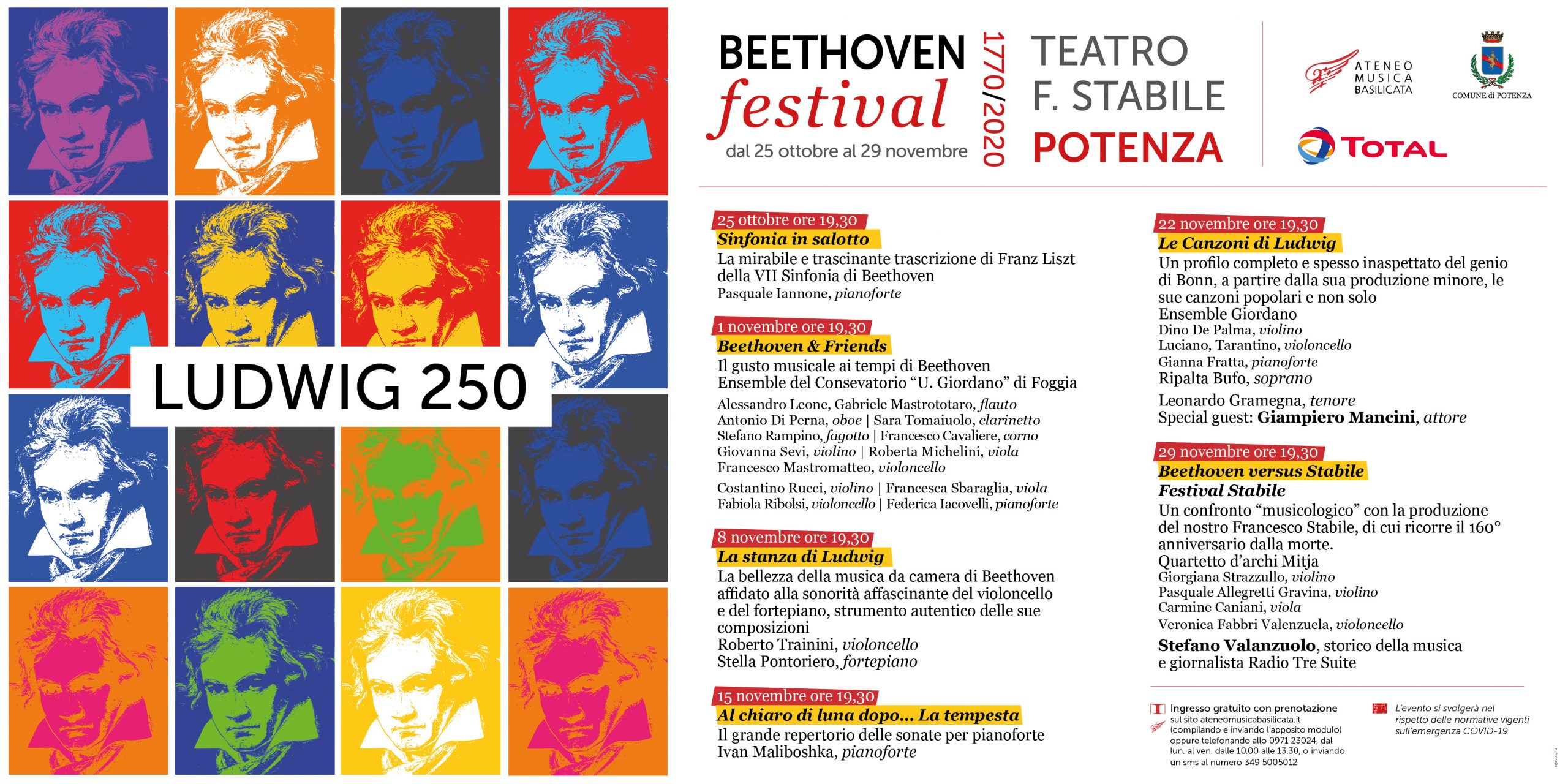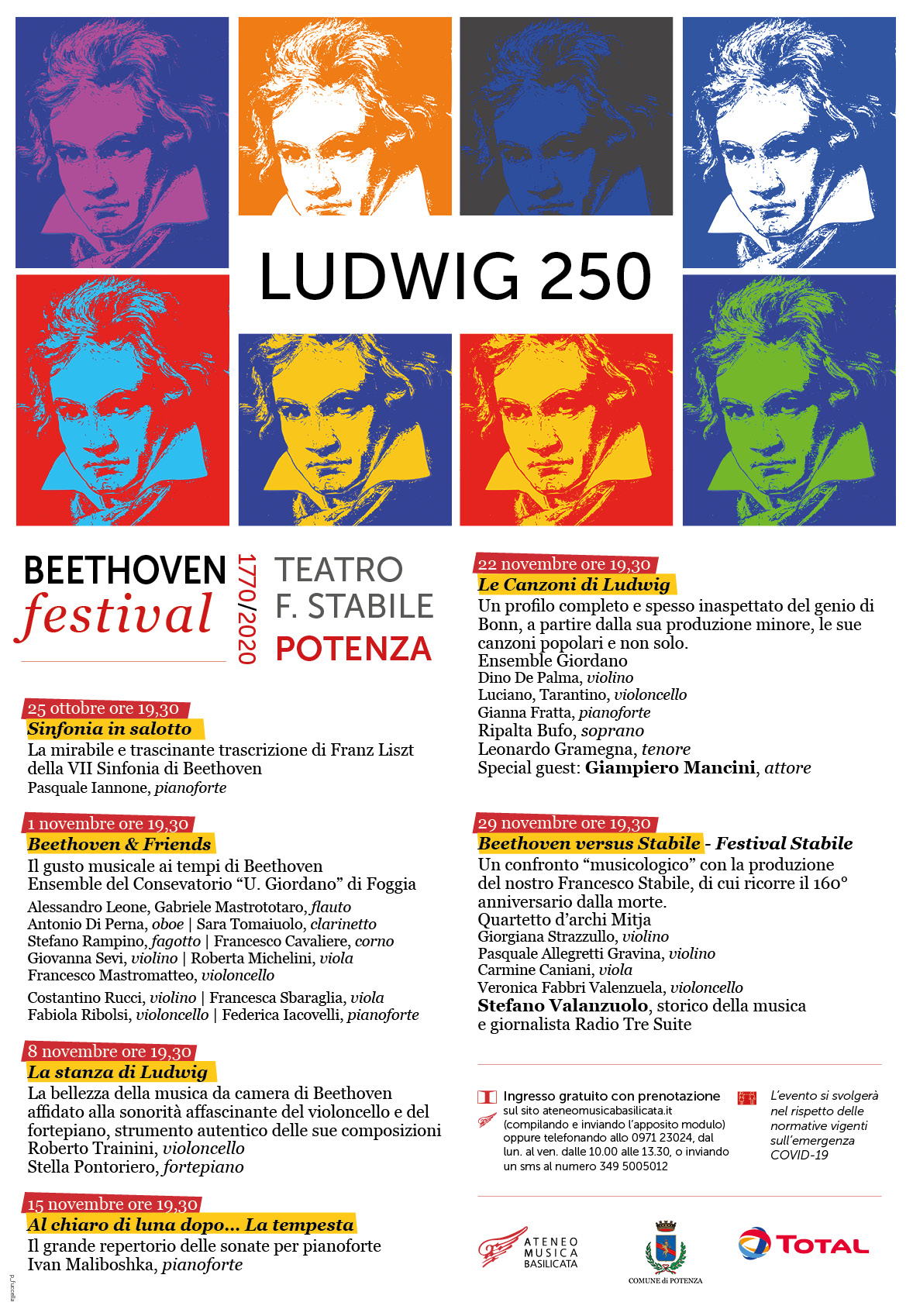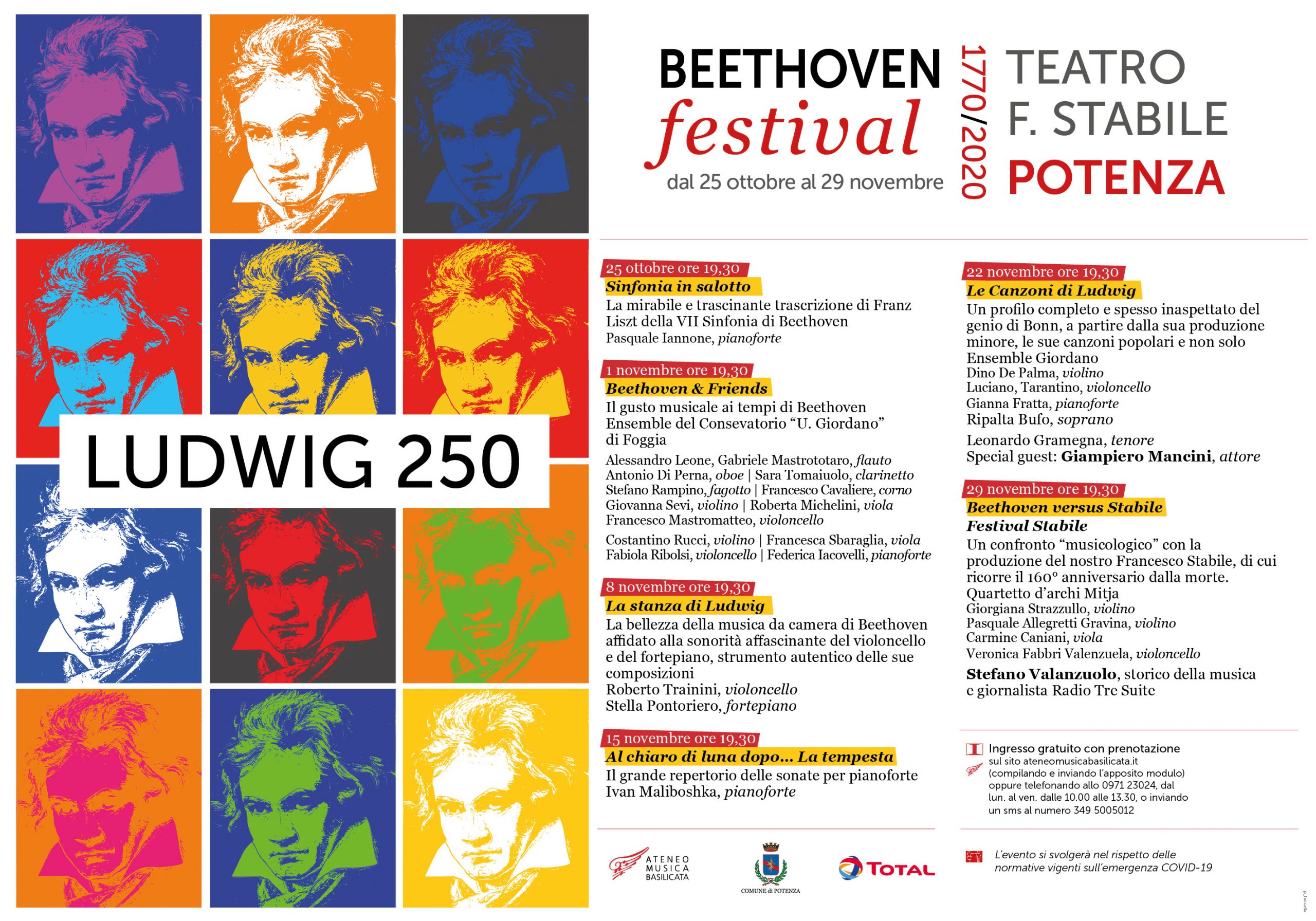 22 Ottobre 2020 “Ludwig 250° Beethoven Festival 1770-2020Dal 25 ottobre al 29 novembre 2020Teatro F. Sttabile, piazza M. Pagano – Potenza ManifestoDownload Manifesto 6×3Download FlyerDownload