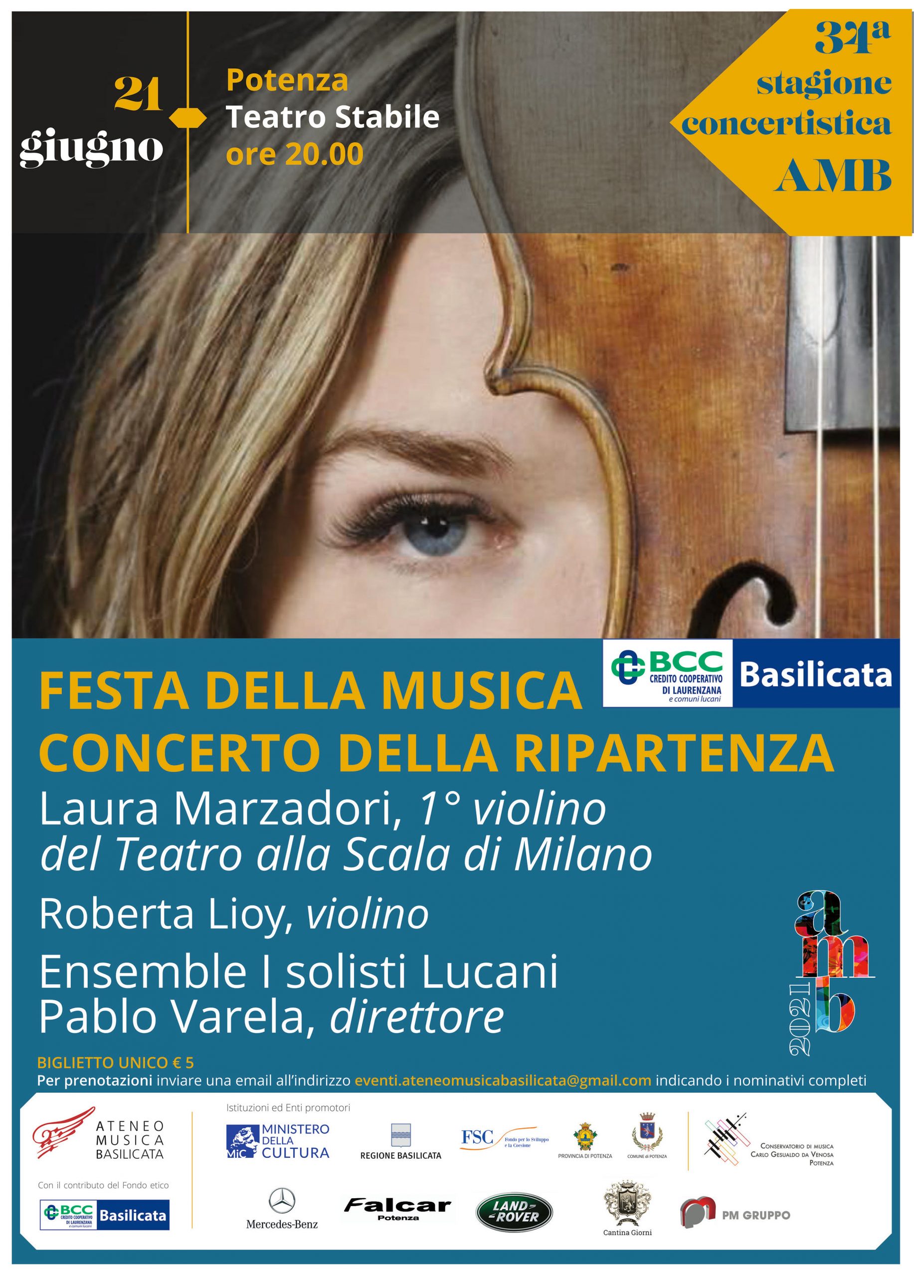 La stagione concertistica si inaugura significativamente il 21 giugno, giornata della Festa della Musica e vedrà protagonista Laura Marzadori, 1° violino del teatro alla Scala di Milano.