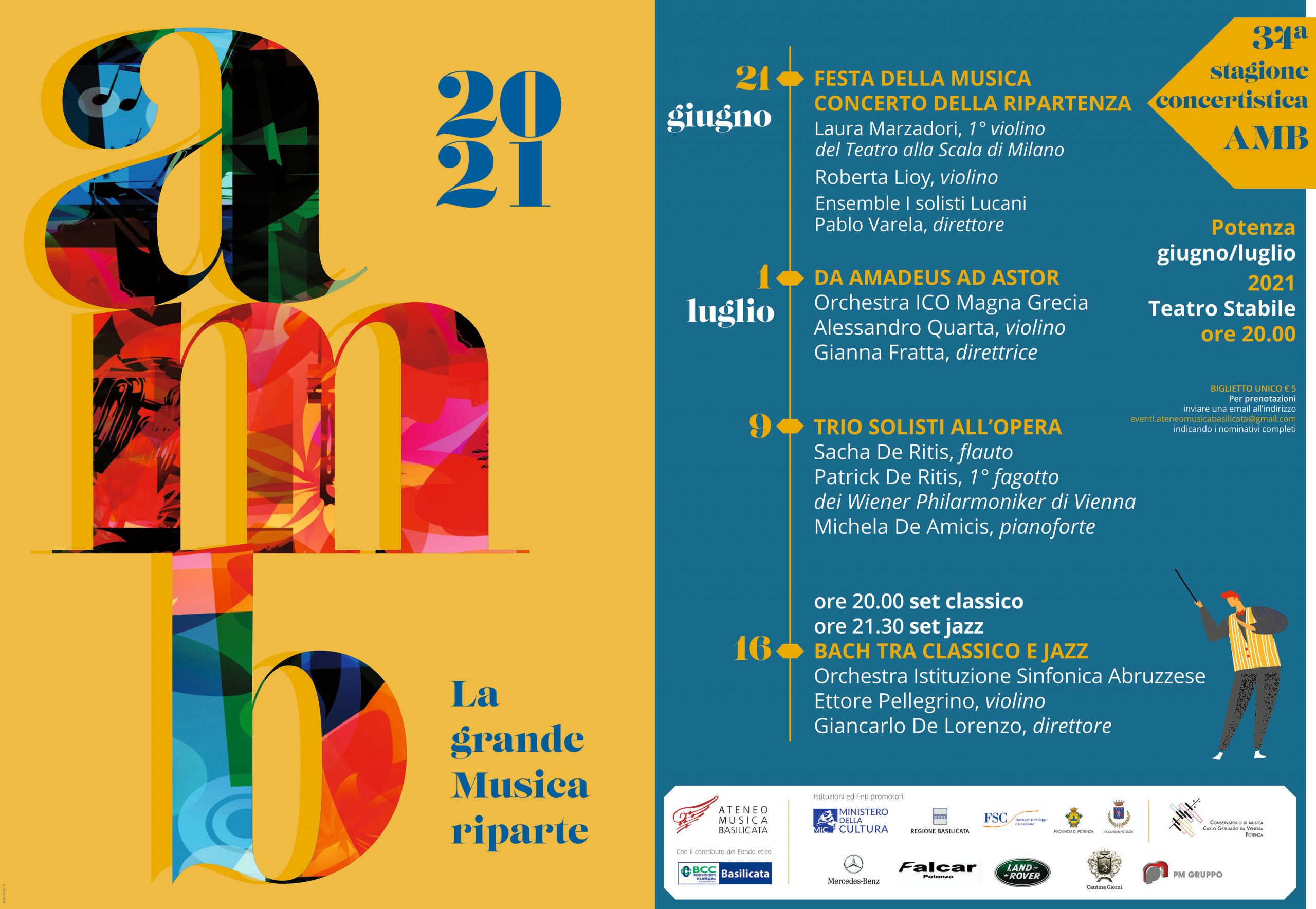 Appuntamento con la Grande Musica in Basilicata che finalmente riparte dal vivo. Il cartellone prevede 12 concerti di artisti e compagini orchestrali di rilievo nazionale ed internazionale che si svolgeranno nel Teatro Stabile.