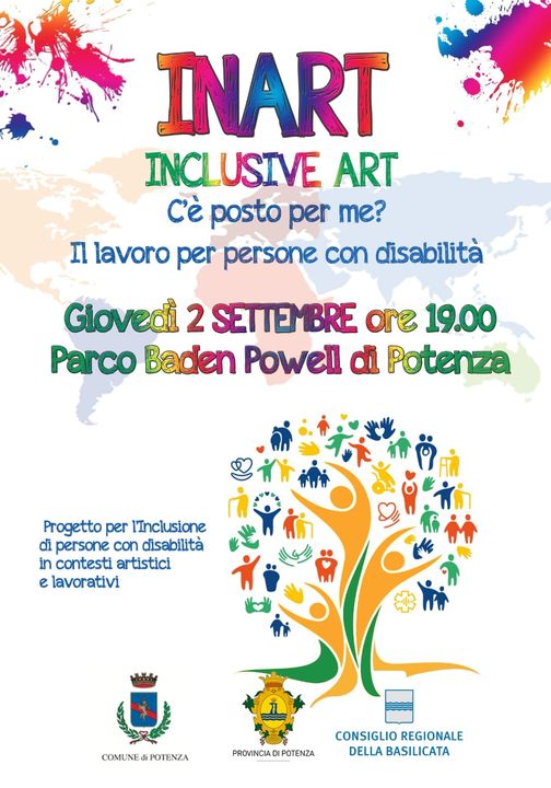 2 Settembre 2021 Inart INCLUSIONE di persone con disabilità in contesti artistici e lavorativi…..Giovedì 2 Settembre, ore 19:00Parco Baden Powell – Potenza. LocandinaDownload