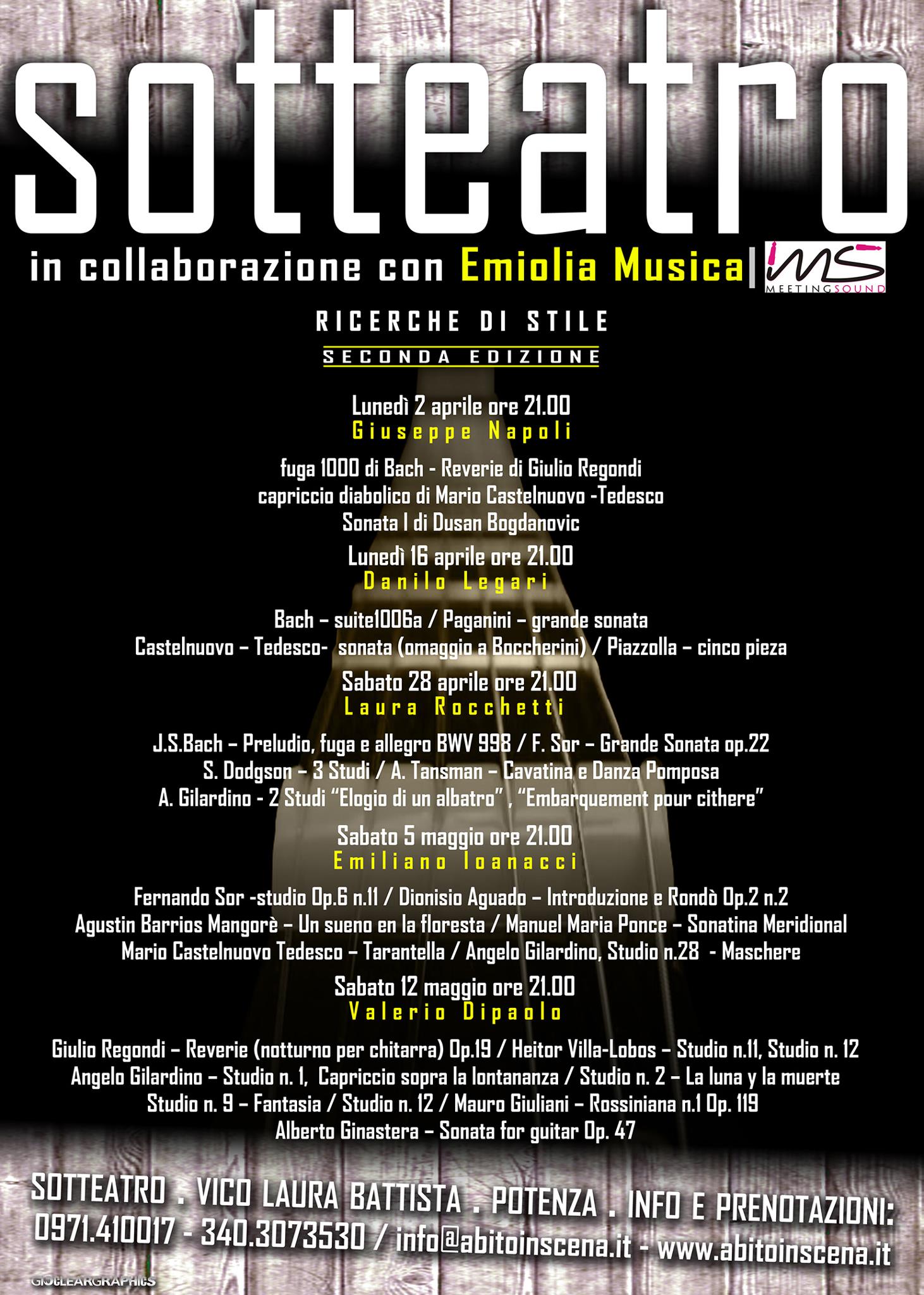 Ricerche di stile è una manifestazione promossa da Emiolia musica associazione musicale del capoluogo Lucano situata in via Caporella (Traversa di Via Pretoria) con la collaborazione di Abito in Scena.