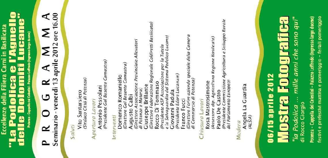 13 aprile 2012: Cappella dei Celestini di Palazzo Loffredo – seminario “Eccellenze della Filiera Carni in Basilicata:“La Podolica e l’agnello delle Dolomiti lucane”.