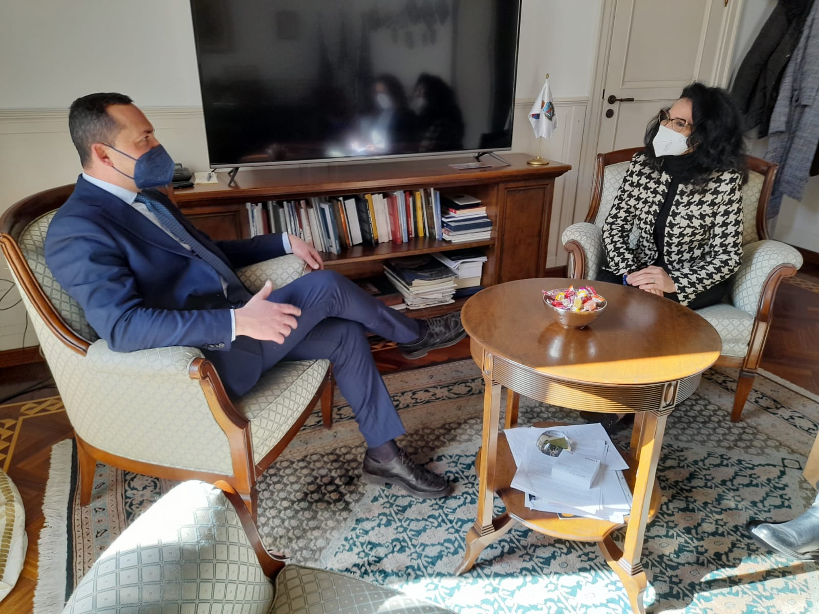 15.2.2022 – ore 13: Il Sindaco di Potenza, Mario Guarente, ha ricevuto la Console della Repubblica di Tunisia a Napoli, Beya Ben Abdelbak, nel suo ufficio al secondo piano del Palazzo di Città, sede municipale di Piazza Matteotti, nel centro storico del capoluogo. Lungo e cordiale l’incontro nel corso del quale sono state affrontate diverse tematiche, dai rapporti tra Italia e Tunisia fino ai progetti di partnership che potranno interessare le realtà economiche dei due Paesi. Dopo una breve presentazione della città da parte del Sindaco, la Console ha illustrato la sua attività nella sede partenopea, dove svolge le sue funzioni da un quinquennio, dopo aver avuto il medesimo ruolo in Francia e Germania. “Mi complimento per aver avuto la volontà e la forza di assumere un ruolo così delicato – ha detto la signora Ben Abdelbak rivolgendosi al Sindaco – pur essendo così giovane”. “Sono il più giovane tra i Sindaci dei capoluoghi di regione d’Italia. L’entusiasmo delle nuove generazioni è importante tanto quanto l’esperienza di chi ci ha preceduto”. “L’emergenza sanitaria – ha proseguito la Console – è stata un’occasione per le Istituzioni per mettersi alla prova e, a Napoli, ho avuto modo di verificare di persona come tra i nostri Paesi esista un legame molto stretto, persone, cibo, clima e soprattutto accoglienza sono caratteristiche che accomunano i nostri popoli. Sono migliaia gli italiani che scelgono di venire a vivere in Tunisia dopo essersi pensionati, favoriti da una tassazione al 10% e da un euro forte”. “Prima della pausa imposta dal Covid-19 – ha aggiunto Guarente – avevamo intrapreso un confronto sulla possibilità di investimenti di aziende locali nel campo dell’efficientamento energetico in Tunisia e Mauritania. Sarebbe bello poter proseguire lungo quel percorso”. La Console, nell’offrire la più ampia disponibilità alla collaborazione, ha concluso il dialogo ricordando come il suo operato sia tutto incentrato “sulla conoscenza dei tunisini e sullo stabilire relazioni. Sarò felice di accoglierla a Tunisi e mi offro di farle da guida per portarla a conoscere la nostra nazione e la nostra cultura”. Il Sindaco si è detto “onorato per l’invito, che accetto di buon grado, perché il mondo deve essere sempre più unito e collaborativo. Con l’incontro odierno abbiamo realizzato un nuovo ponte tra le nostre comunità, aspetto imprescindibile per operare concretamente per il bene comune, nel rispetto delle regole, nazionali e internazionali”. Al temine del dialogo uno scambio di doni, un’immagine del teatro Stabile e una bottiglia di olio tunisino.