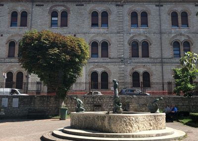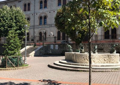 Near the current side entrance, close to the external wall, a small fountain was planted, equipped with a drinking trough and a wash-basin. The creation of the Basilicata Military District made a second entrance necessary in the center of the south side, in front of the barrack’s door, still existing.
