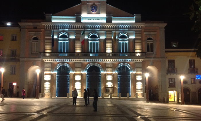 L’edificazione del teatro inizia nel 1856 con i fondi forniti da una società di azionisti benestanti. I lavori diretti dagli architetti Alvino e Pisanti ripresero, però, solo nel 1865, dopo una lunga interruzione dovuta al terremoto del 1857. Il teatro fu inaugurato il 26 gennaio 1881 con la rappresentazione de “La Traviata ” di Giuseppe Verdi, alla presenza del re Umberto I e della regina Margherita di Savoia. L’impianto ipologico del Teatro Stabile viene progettato guardando a due importanti modelli: la Scala di Milano e il prestigioso San Carlo di Napoli da cui trae notevole ispirazione.