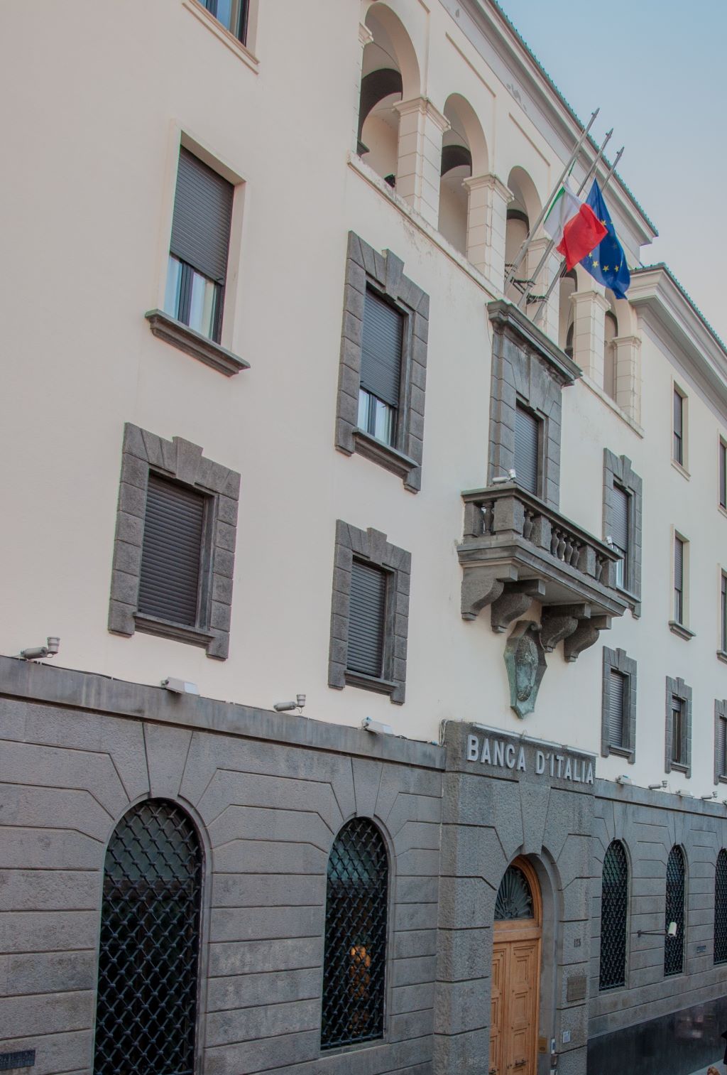 L’imponente edificio con i prospetti principali su via Pretoria e piazza Matteotti, fu costruito negli anni 1935-38 al posto di palazzo Navarra. Di stampo neo-rinascimentale, secondo il gusto fascista, ha pianta rettangolare, con atrio centrale coperto da un lucernario in vetro cemento. In alto, sono alcuni loggiati anchìessi di chiara ispirazione rinascimentale.